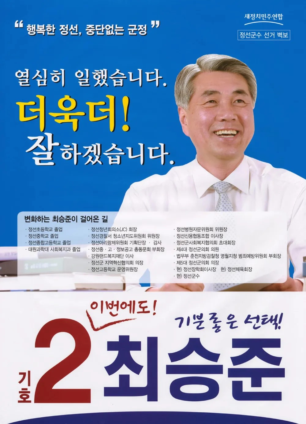 강원 정선군수 / 더불어민주당 / 당선 / 3선