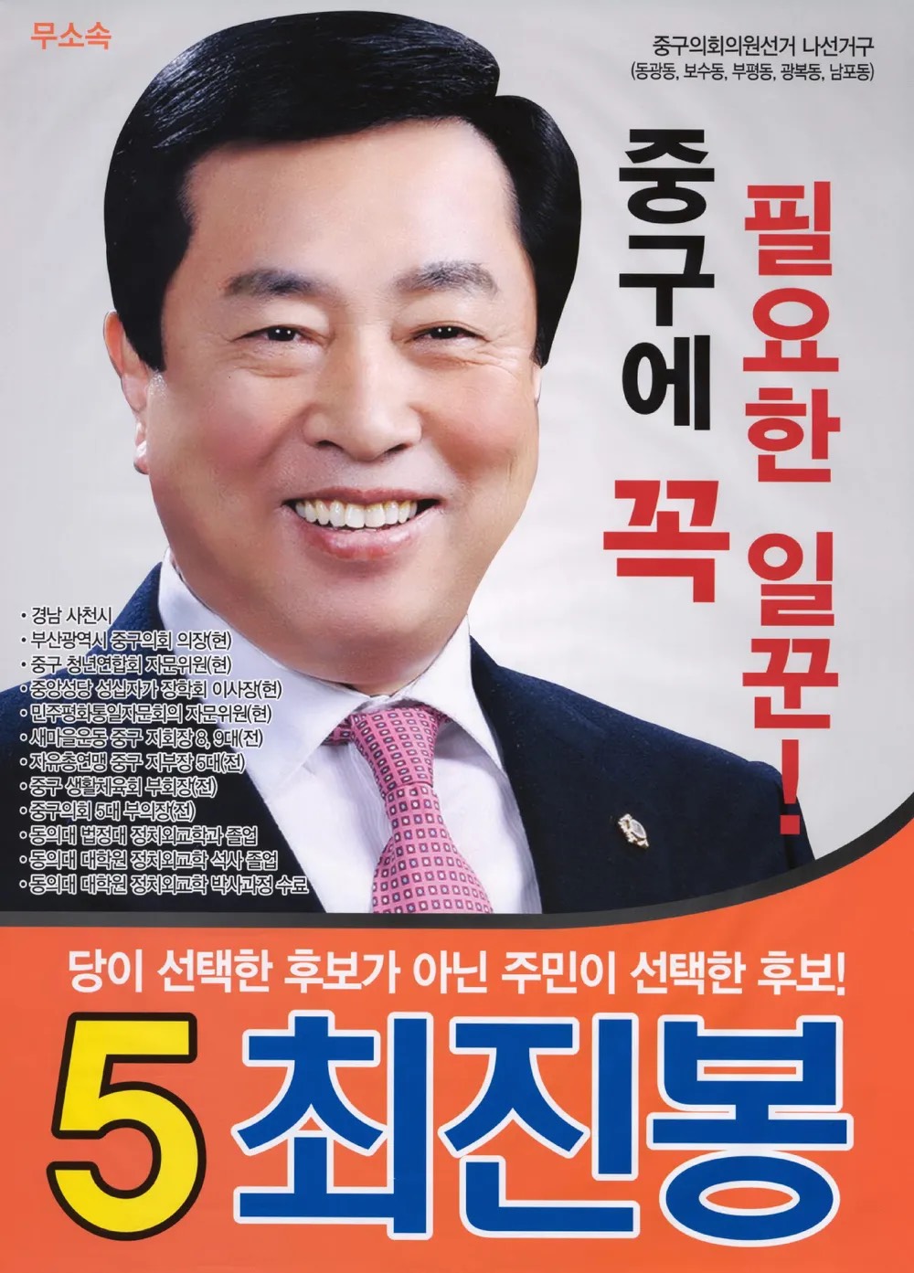 제7대 부산광역시 중구의회 의원 (부산 중 나 / 무소속 / 3선)