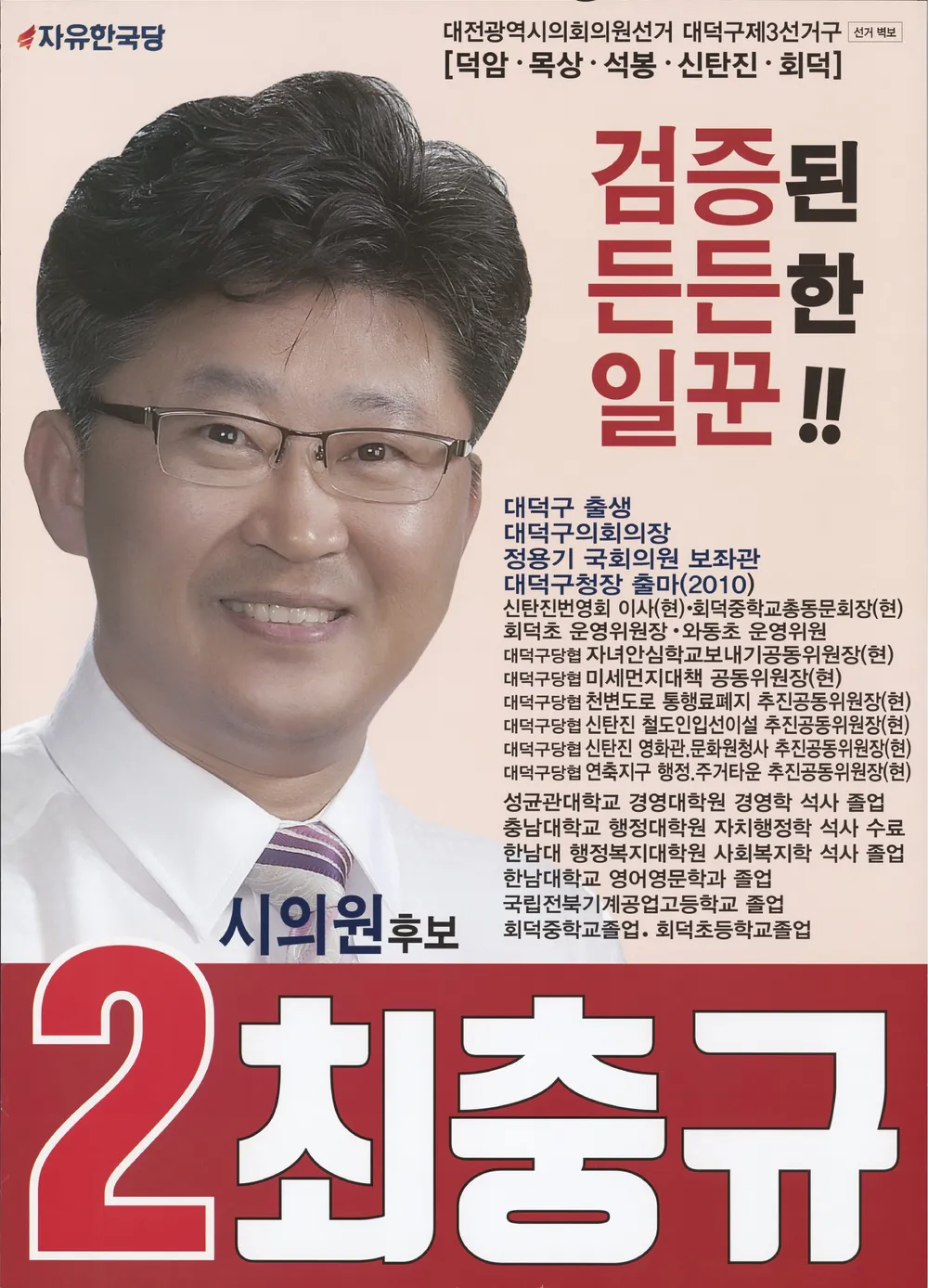 최충규 대덕구청장 프로필|소속 정당|나이|학력|재산|종교|후보|