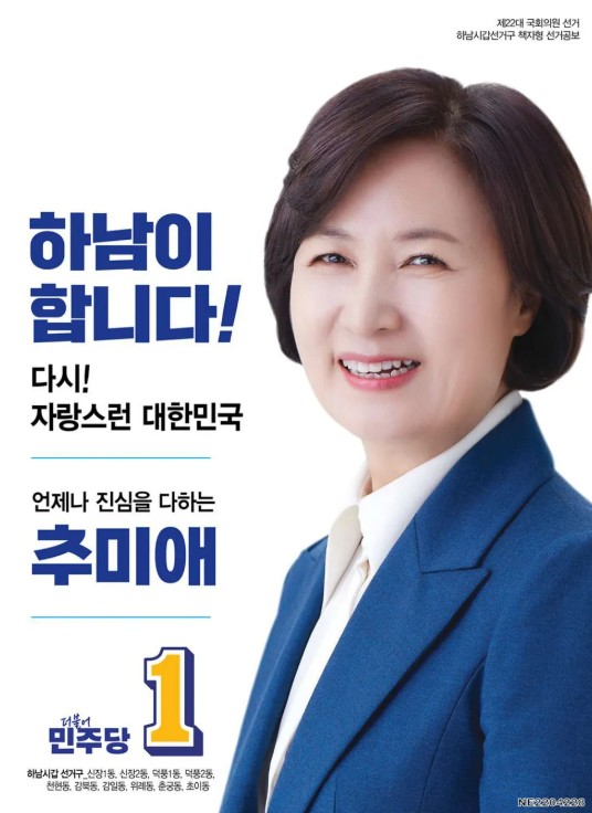 2021년 더불어민주당 제20대 대통령 선거 경선에 출마했으나, 3위로 낙선하였고, 이후 이재명 후보의 대선캠프에서 명예선거대책위원장을 역임했습니다. 또한, 같은 해 더불어민주당의 제20대 대선 경선에서 당의 승리를 이끈 후, 법무부 장관으로서의 개혁 성과를 바탕으로 다양한 정치적 활동을 이어갔습니다. 2024년 국회의원 총선거에서 지역구르 옮겨 경기도 하남시 갑에서 당선되며 여성 최초의 6선의원이라는 타이틀을 얻었습니다. 2024년 윤석열 정부의 비상계엄 사건과 관련해, 추미애는 국회에서 이를 강하게 질타하며 국정조사 특별위원회 조사단장으로서 비상계엄의 진상 규명에 나섰습니다.