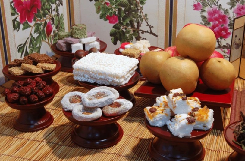 5. 과일과 떡을 앞쪽 줄에 차립니다.