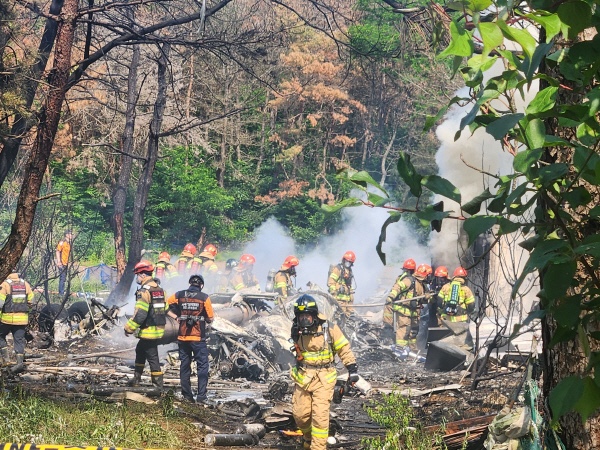소방당국은 이번 사고에 대응하기 위해 총 17대의 소방차와 2대의 소방헬기, 그리고 40명의 소방 인력을 현장에 투입해 진화와 수습 작업을 진행했습니다. 연기가 계속 피어오르고 있는 사고 현장은 매우 험난한 산악 지대여서 작업에 어려움이 따르고 있지만, 관계자들은 최대한 신속하게 화재를 진압하고 사고 수습에 만전을 기하고 있습니다.