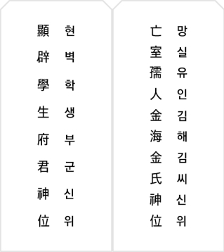 현비유인본관성씨신위(顯卑孺人本貫姓氏神位)