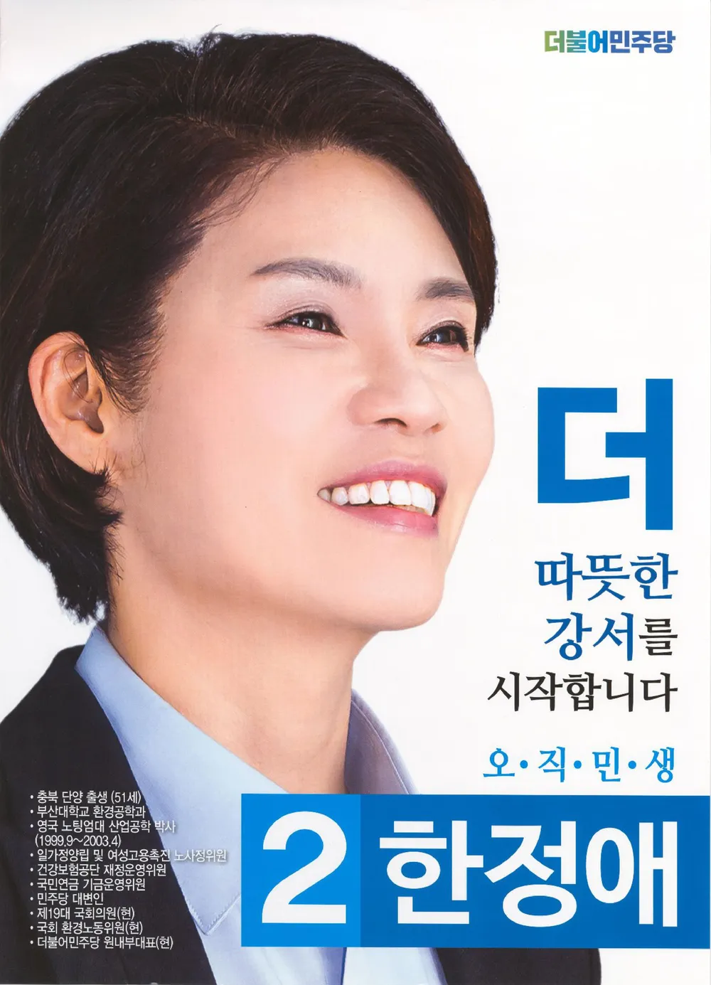 2024년 제22대 국회의원 총선에서도 서울 강서병 지역에서 재선에 성공하며 4선 의원으로서의 위상을 이어가고 있습니다. 긴 시간 노동자와 환경, 지역주민을 위한 입법과 정책을 실천해온 한정애 의원은, 앞으로도 따뜻하고 책임감 있는 정치로 국민의 삶을 지키는 데 앞장설 것입니다. 정치는 결국 사람의 삶을 바꾸는 일이라는 신념 아래, 현장과 국회를 잇는 가교로서, 한정애 의원의 진심 어린 행보는 계속되고 있습니다.