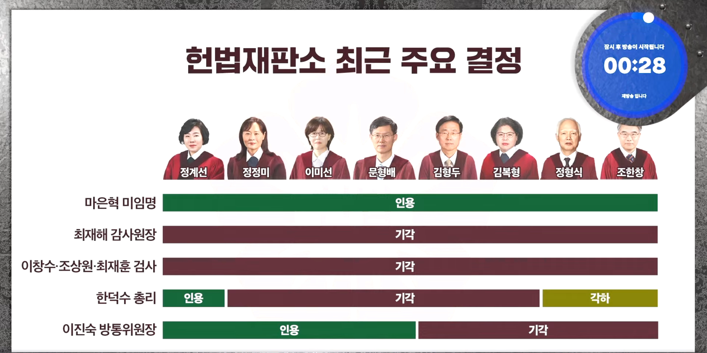 헌법재판관 8인 명단|탄핵선고일|나이|고향|성향|임기|탄핵조건