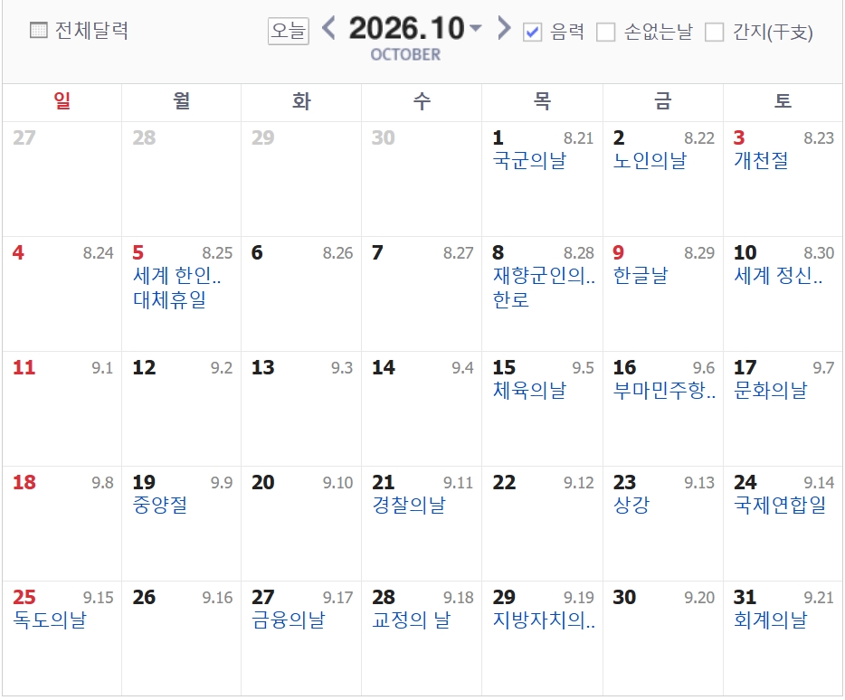 17일 (금요일) : 제헌절 (2026년 휴일 재지정 예상)