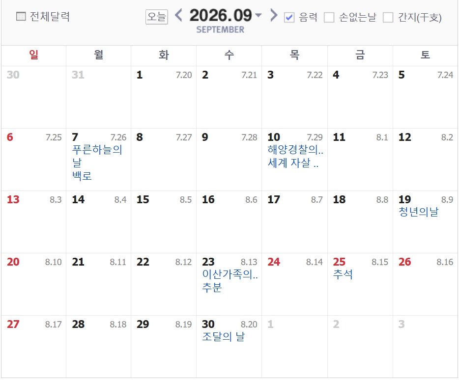 24일 (목요일) ~ 26일 (토요일) : 한가위 연휴