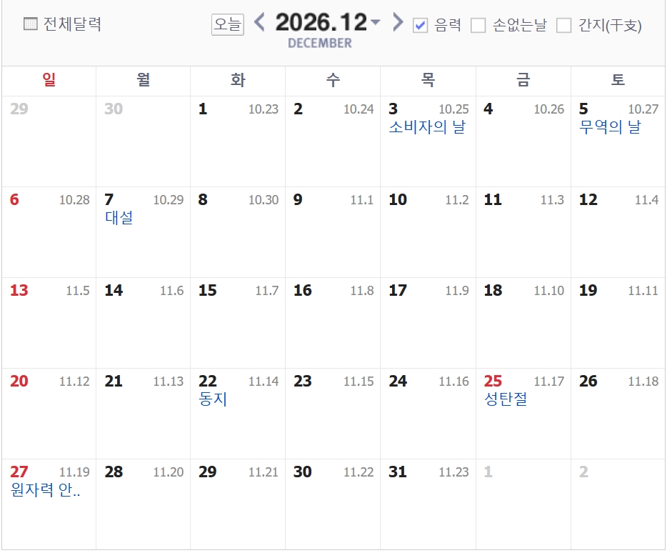 2026년을 맞이하며 남은 한 해를 정리하는 시점에서, 내년의 휴일을 잘 알아두면 바쁜 일상 속에서도 여유롭고 알찬 시간을 보낼 수 있을 것입니다. 열심히 일하는 만큼 잘 쉬는 것이 중요하다는 점을 잊지 말고, 미리 계획을 세워 의미 있는 한 해를 준비하시길 바랍니다.
