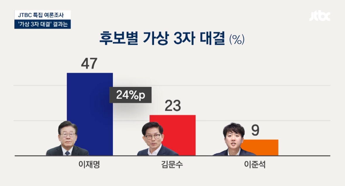 대통령 후보 지지율 여론조사 / JTBC / 한국갤럽