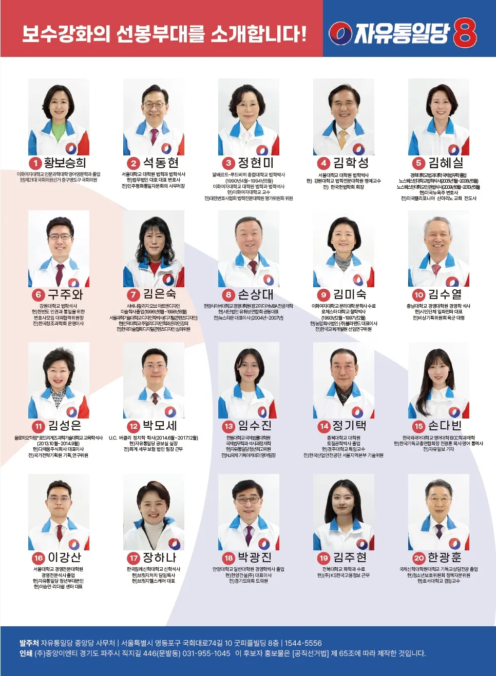 제22대 국회의원 선거 자유통일당 비례대표 후보