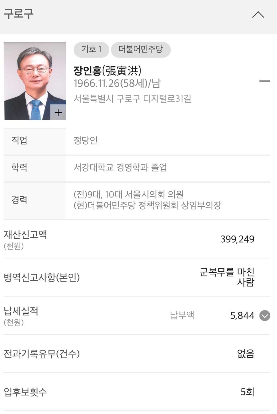 ◆ 서울 구로구청장 (기초자치단체장)
