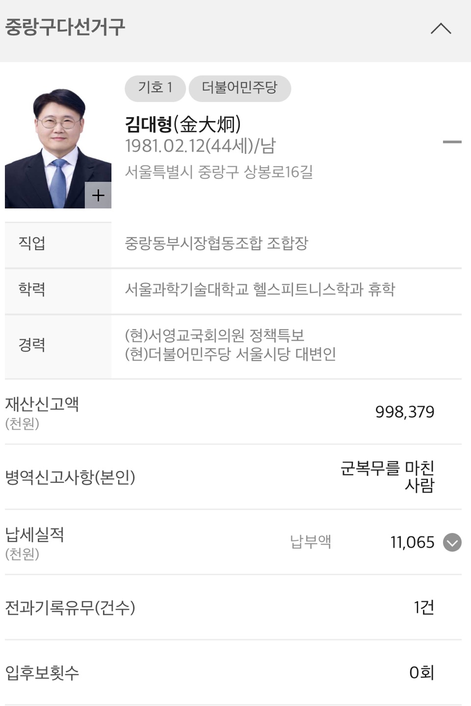 ◆ 서울 중랑구 다선거구 (기초의회의원)