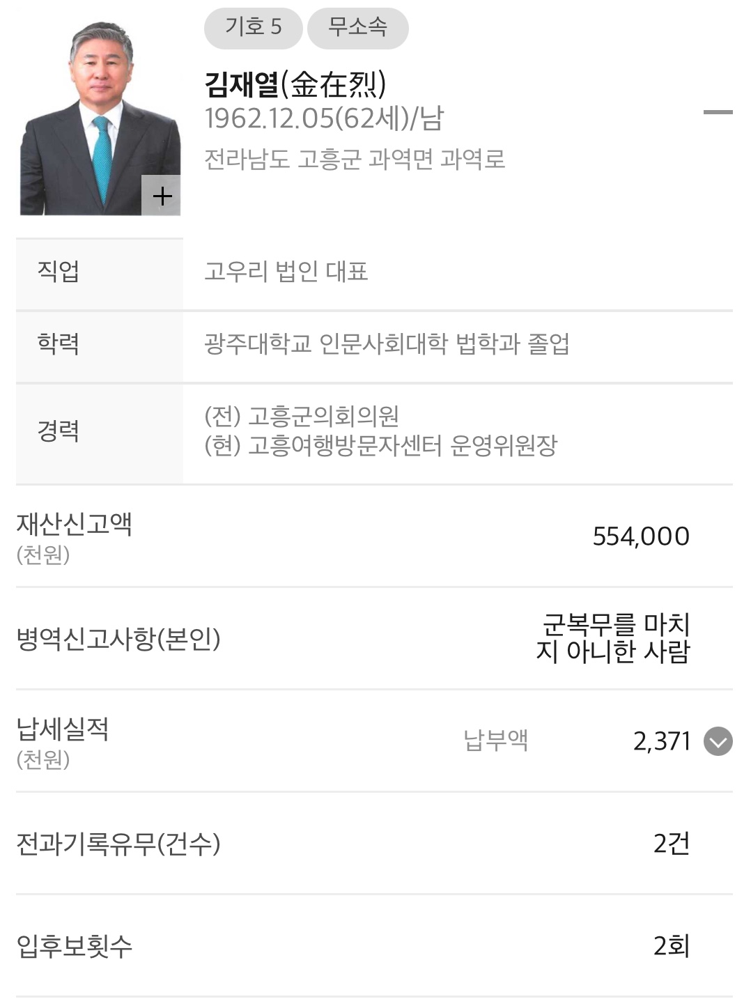 ◆ 전남 고흥군 나선거구 (기초의회의원)