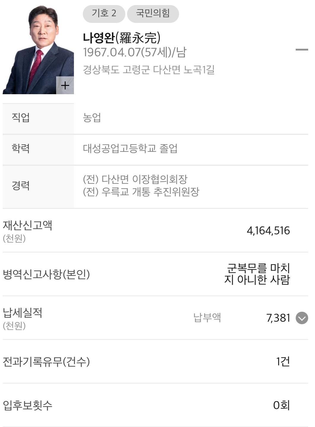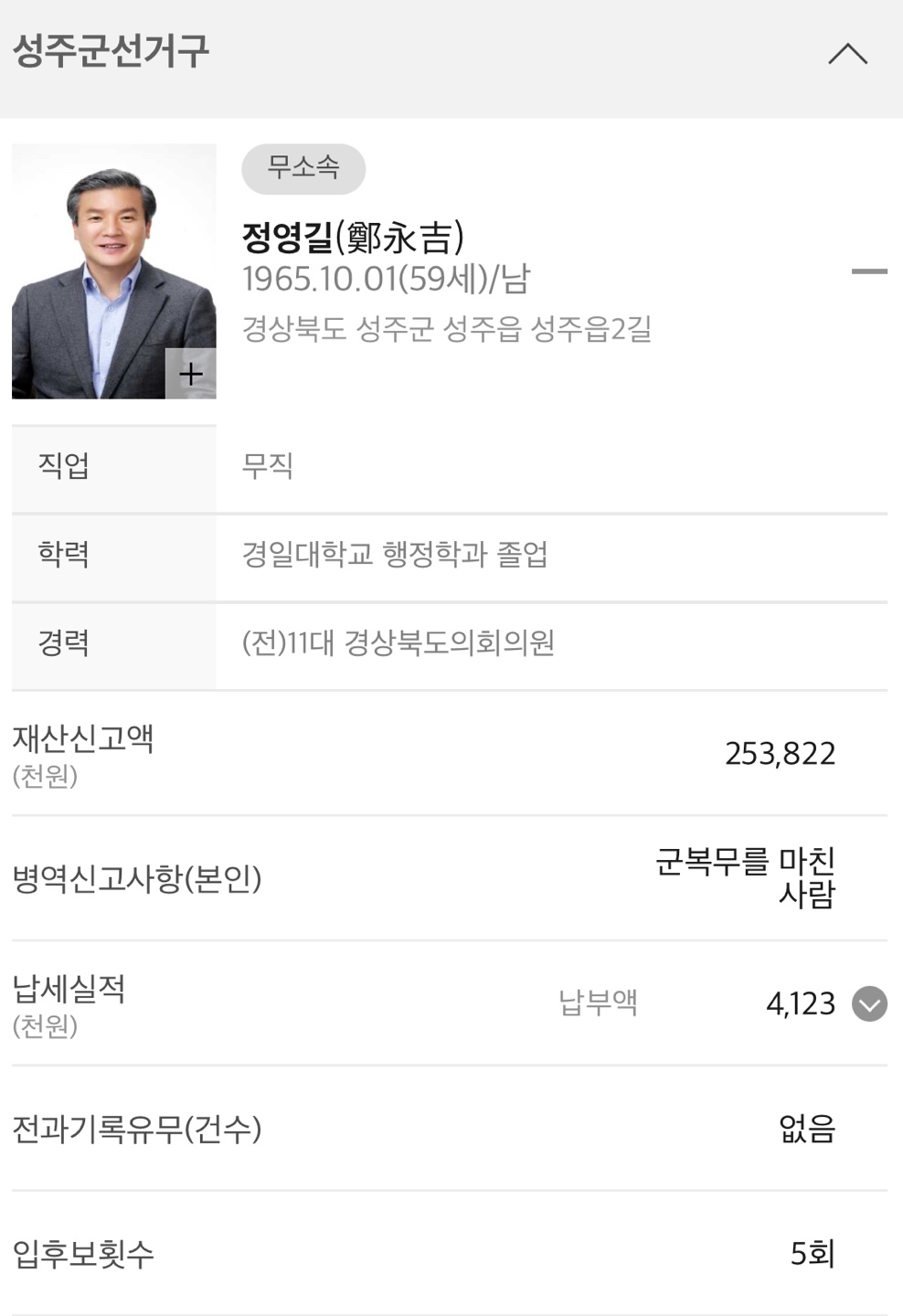 ◆ 경북 고령군 나선거구 (기초의회의원)