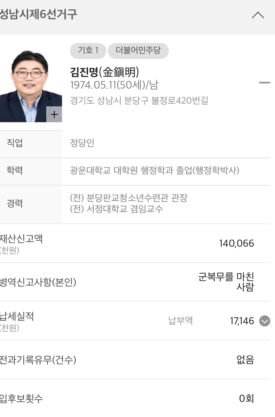 ◆ 경기 성남시 제6선거구 (광역의회의원)