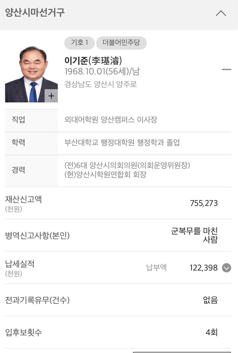 ◆ 경남 양산시 마선거구 (기초의회의원)