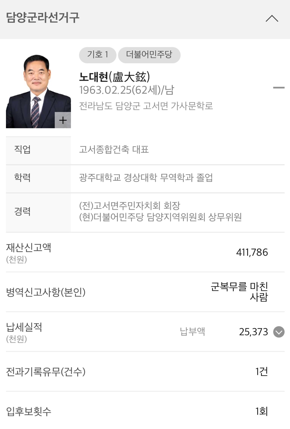 ◆ 전남 담양군수 (기초자치단체장)