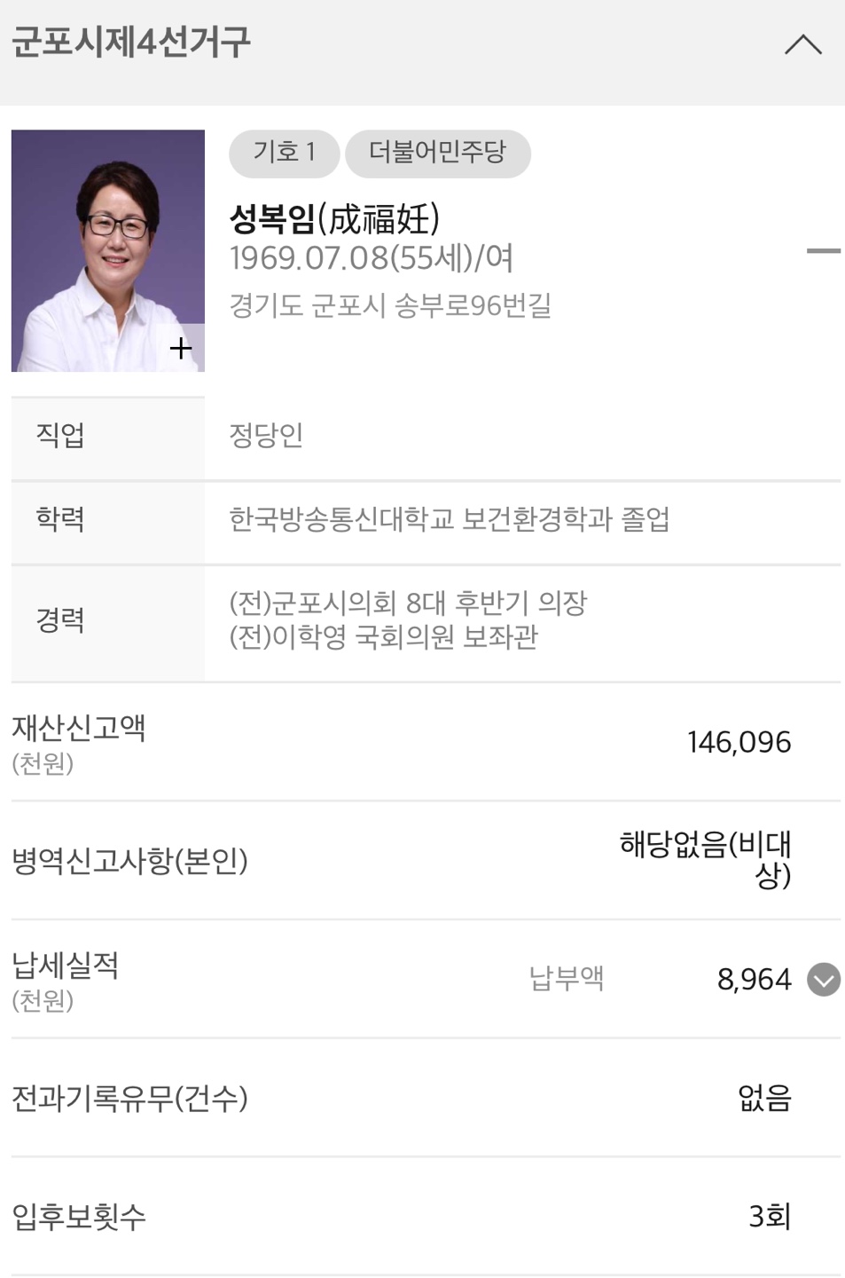 ◆ 경기 군포시 제4선거구 (광역의회의원)
