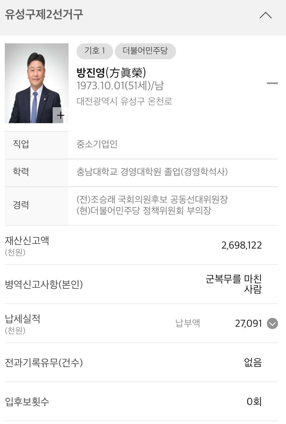 ◆ 대전 유성구 제2선거구 (광역의회의원)